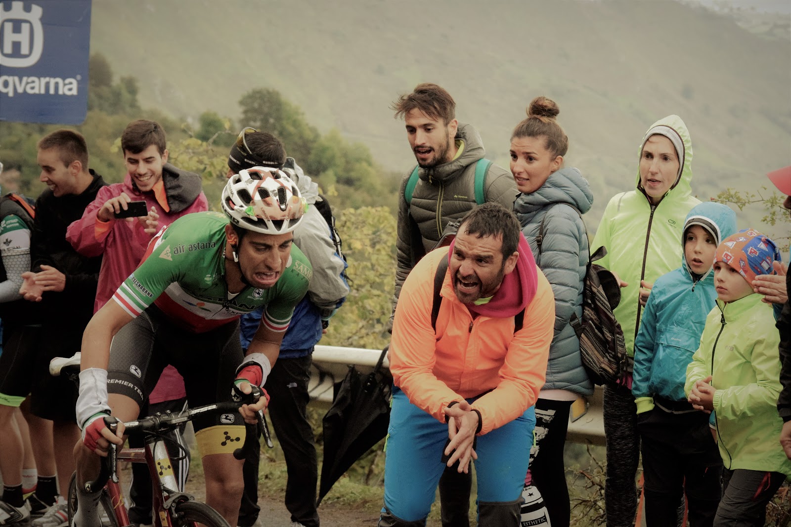 Con multitud de gente subiendo , eso que el dia no era el apropiado por la niebla y la lluvias , la gente se veía animada a subir , multitud de bicis y gente andando ya se veía por las cunetas y curvas , con sus neveras , paraguas y demás utensilios para resguardarse de las lluvias y frío .